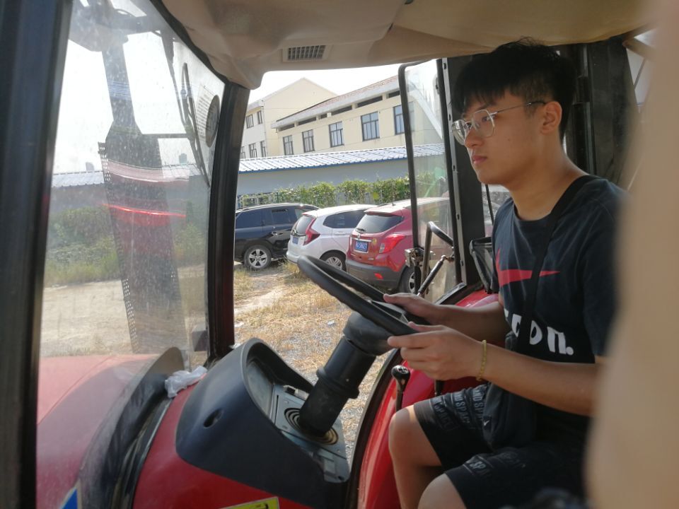 王镜朝在农机课上驾驶农业机械设备
