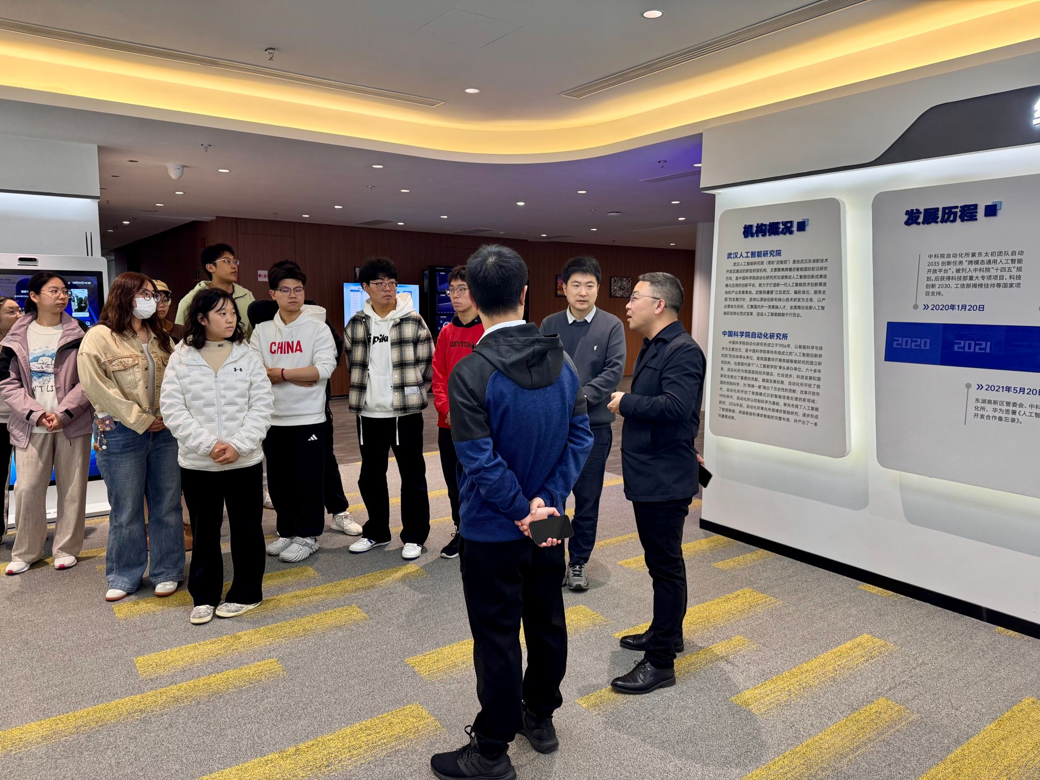 10月26日下午,张之洞班“洞谈”创新课堂任课教师李剑、信息管理领域优秀创业者韩轩校友与12名本科生前往武汉人工智能研究院开展参访交流活动。此次活动是“洞谈”创新课堂 ——“信息科学创新专题”的课程实践环节,旨在让学生近距离接触人工智能前沿技术,搭建产学研沟通桥梁。